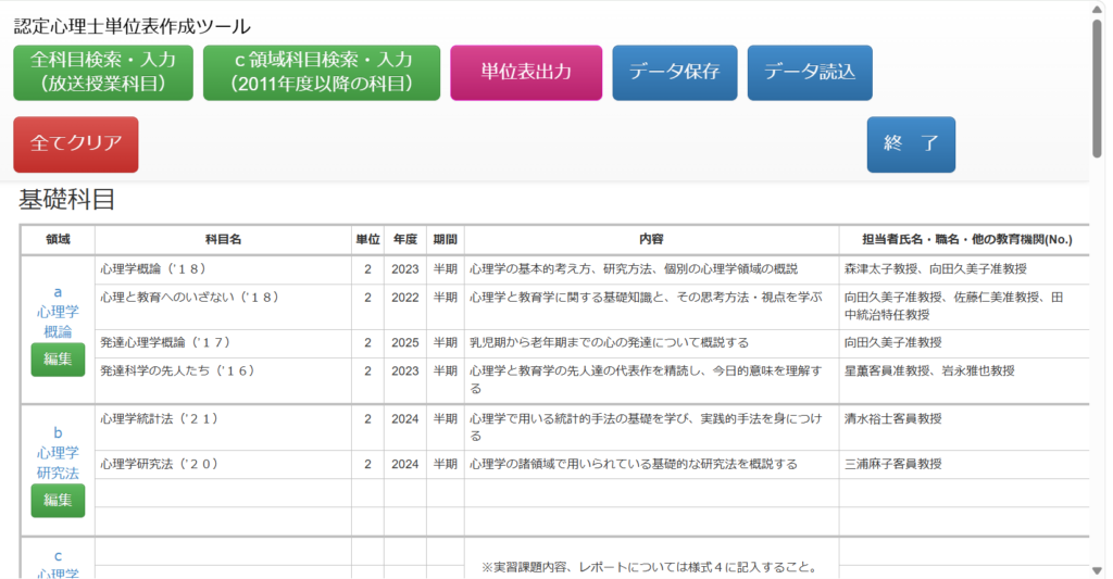 「認定心理士単位表作成ツール」の活用
