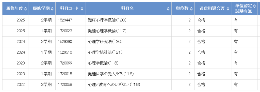 テストが終わった後に届く「単位修得状況一覧(単位認定書)」という紙には、ぜひ目を通してしてください。二つ折りの紙に最初はポツンと1行だけだった科目数が、2行、3行と増えていくのを見ると、「自分はこれだけ頑張ったんだ」という達成感があり、やる気にもつながります。次はどの科目を選ぼうか、と計画を立てるのも、今では楽しみの一つになっています。